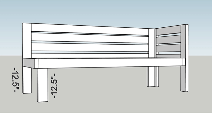 The legs are attached to the rectangular frame 12.5″ up.