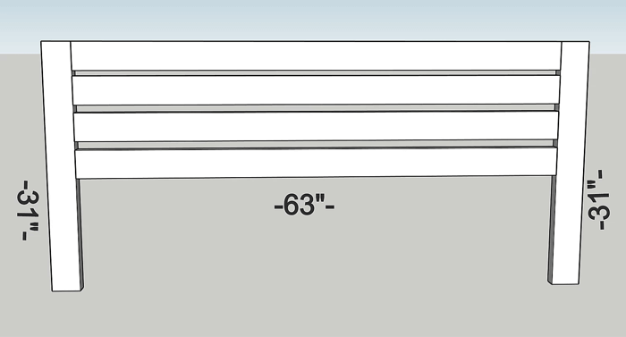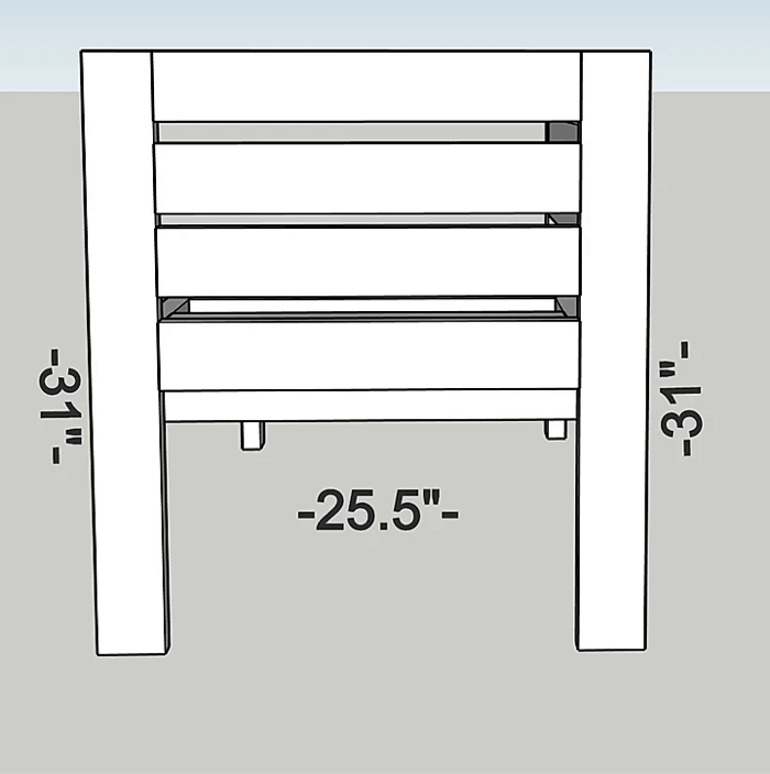 I learned the hard way that its MUCH easier to attach the legs and backing once they are pre assembled. You’ll need 4 – 2 x 4 @ 31″ for these legs.