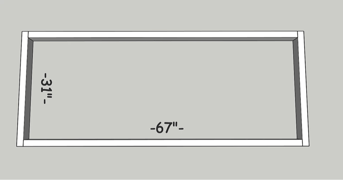 Lets start off with the rectangle frame. Using the 2x4s, cut 2 – 2 x 4 @ 67″ pieces and 2 – 2 x 4 @ 31″ pieces.