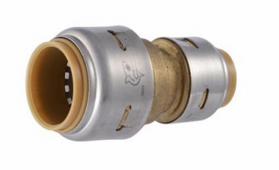 SharkBite Max, 1"x3/4" Lead-Free Reducing Coupling. It is made of durable DZR brass and is certified to withstand pressures up to 20 PSI and temperatures up to 200 degrees Fahrenheit. This coupling is design certified to ASSE 1061/NSF61 standards and meets UPC, IPC, and CUPC requirements. It is listed with IAPMO and is certified for use on potable and hydronic water distribution, underground applications, and as a manufactured joint without the need for access panels. It is Lead-Free compliant to federal law 111-380. Bagged.