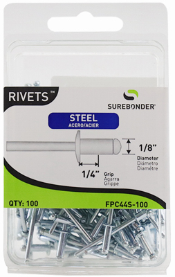 100 Pack, Medium Steel Rivet, 1/8" Diameter, Grip Range: .188" - .250", Steel Mandrel.