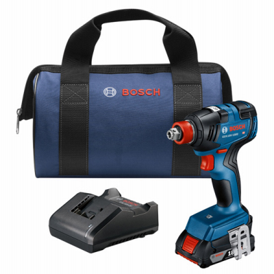 Bosch 18-Volt 1/4-inch and 1/2-inch Brushless Cordless Impact Driver Kit combines the versatility of a 1/4-inch quick-change hex shank with the strength of a 1/2-inch square drive, allowing you to use both bits and sockets with ease. The EC Brushless motor delivers an impressive 1,800 in. lbs. of torque and up to 4,200 impacts per minute, providing professional-grade power for even the most demanding tasks. The impact driver eliminates the need for socket adapters, transmitting more torque directly through the 1/2-inch square drive anvil. This kit includes one 18-Volt 2.0 Ah SlimPack battery and charger, ensuring outstanding runtime and convenience.