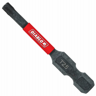5 pack, 2" #25 Torx Drive Bit. Tip design provides a strong, precise grip that reduces wear, stripping and slippage. Torque resistant design absorbs torque for less stress at the tip when tightening and removing nuts and screws. This range is impact strong, delivering increased shank stability and durability in cordless and corded impact and drill drivers.