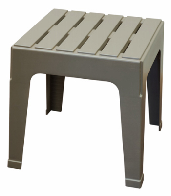 Adams Big Easy Stack Table. It measures 17.75" x 18.9" x 18.9" and features an attractive wood grain finish. Made of high-quality molded resin, this table is durable, easy to maintain, and suitable for all-weather use. Designed to complement the Big Easy Adirondack Chairs (not included) and has a weight capacity of 15 lb. Backed by a 1-year limited warranty.