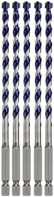 Blugranite turbo, 5 pack, 1/4" x 4" x 6", carbide, hammer drill bit, upgraded build delivers 5x life & 2x speed over standard masonry bits, hex shanks & impact rated allows use in impact drivers & hammer drill/drivers for added versatility, 4 grind head delivers 2 more cutting angles for longer life & faster speed, multi-grind carbide centering tip offers accurate starts in brick, masonry & more, robust bit head provides long life in impact applications, milled u-flutes with deep cut spirals delivers fast dust removal, bosch-made carbide delivers outstanding durability under heavy loads, 1/4" diameter, 4" flute length, 6" length, 6" overall length, .25" shank diameter, 4" useable length.