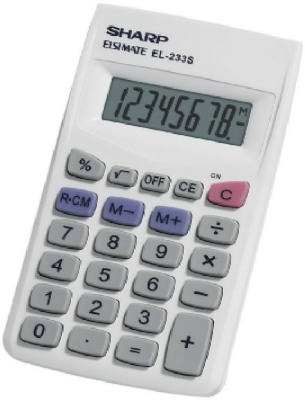 Large 8 digit LCD display. 3-key memory. Percent and square root keys. Battery powered.