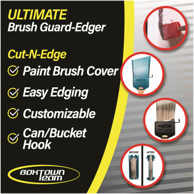 Ultimate paint brush accessory for 2.5"and 2". Our patent-pending multi-function device allows many uses for DIY and pro painters. Our innovative product allows user to edge with precision like never before and covers brush for storage. Hook to paint cans/buckets for keeping wet, and bristles to help clean brush under water. Nothing else like it on market. Package includes quality 2.5" BT paint brush