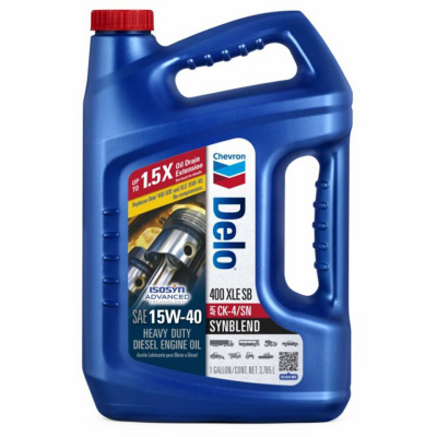 Chevron Delo 400 SAE 15W-40 XLE Diesel Synthetic Blend, gallon, premium synthetic blend, long drain mixed-fleet engine oil specifically formulated for on-highway applications including 2017 greenhouse gas (GHG 17) compliant diesel engines, provides high performance piston deposit control & turbocharger protection due to its superb oxidation performance, its high performing detergent & dispersant additives provide excellent diesel engine component protection, engineered to deliver longer oil life, better wear protection and longer engine life.