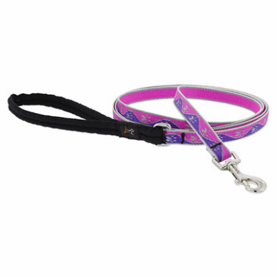 1/2" x 6', Dog Leash, Reflective Pink-Paws Pattern, Soft Padded Handle Features Strong Bar Tack Stitching, Zinc Plated Trigger Snap, Quality Webbing, Ideal For Puppies & Small Dogs, Not Recommended For Tie Out, Guaranteed Even If Chewed.