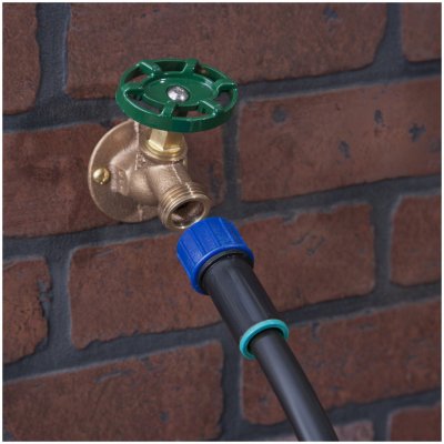 - Thread the 3/4 in. FHT connection point of the adapter onto the MHT connection point on hose bibb or garden hose; insert the 0.710 in. tubing into the other end, where an internal barb holds it in place; Built-in swivel makes it convenient to remove or at