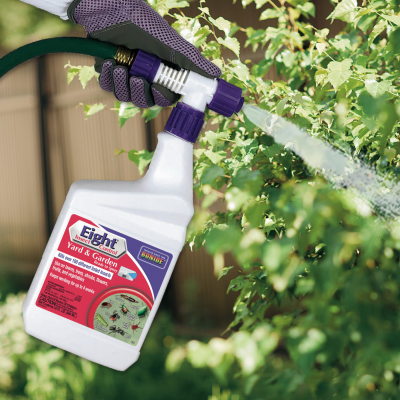 Our product controls over 100 insects/pests including species of ant, cricket, spider, flea, tick, mite, moth, caterpillar, beetle, gnat, fly, chinch bug, & more. This bug defense is great for use on listed lawns, trees, shrubs, flowers, fruits, nuts, vegetables, outside surfaces of buildings, sidewalks, patios, porches, & more. This product is not designed for indoor use in your home. Our fast-acting formula provides quick results and keeps working for up to 4 weeks. This product arrives in a container with an attached hose-end sprayer. Simply connect a garden hose to the sprayer and begin application.