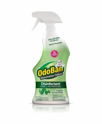 OdoBan Eucalyptus Scent 360 Continuous 32 oz. Ready-to-Use Aerosol Spray is a versatile air freshener, disinfectant, and cleaner. It effectively eliminates unpleasant odors in kitchens, bathrooms, and other household areas. The triple-action formula cleans, disinfects, and deodorizes, leaving a fresh scent behind. It kills 99.99% of germs, including Streptococcus Pyogenes Strep, Escherichia Coli 0157: H7 E.Coli, Pathogenic Strain, Listeria Monocytogenes, Staphylococcus Aureus Staph, and Klebsiella Pneumoniae. It is also fungicidal against germs like Trichophyton Mentagrophyte The Athletes Fungus. This industrial-strength liquid odor eliminator leaves no residue and has various uses. It cleans, disinfects, sanitizes, and deodorizes precleaned hard, non-porous household surfaces. Eliminate unpleasant odors on washable surfaces such as upholstery, carpets, bedding, showers, walls, and floors while leaving a fresh scent.