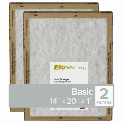 Filtrete 14" x 20" x 1" Flat Panel Air Filter, captures large airborne particles, these non-electrostatic home air filters capture lint and household dust. Outperforms fiberglass air filters for your furnace, air conditioner or HVAC system.