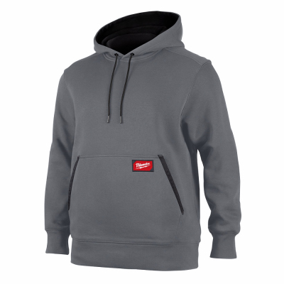 Milwaukee FREEFLEX Large Gray Midweight Pullover Hooded Sweatshirt. Midweight pullover hoodie is easy to layer and more breathable. This midweight hoodie offers seasonal versatility while delivering on a trade focused design with drop shoulder seams and reinforced pocket seams. The comfortable fit and design allows you to move freely and easily on the job.