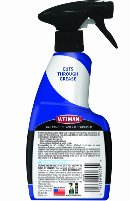 Weiman 12 oz. Gas Range Cleaner effectively penetrates, dissolves, and removes tough, burned-on foods, grease, residue, stains, and soil from gas ranges, stovetops, knobs, drip pans, grates, and gas BBQ grills. It cleans, shines, and protects your cooking surfaces, keeping them looking shiny and new with daily use. The non-abrasive formula ensures that it won't scratch delicate surfaces, and the trigger spray bottle makes application a breeze.