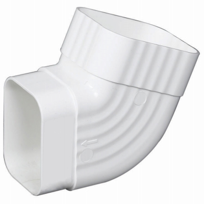 The Amerimax 2 in. x 3 in. white vinyl B or side elbow has a crush- and dent-proof vinyl construction for durability. Use it at the top and bottom of downspouts to direct runoff to the left or right and away from foundations to prevent erosion and damage. This elbow is designed to withstand extreme temperatures and can be used with metal and vinyl downspouts.