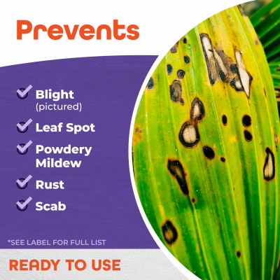 - Stop and prevent various common disease including rust, blight, powdery mildew, scab leaf spot and more; this product is effective on over 30 listed diseases