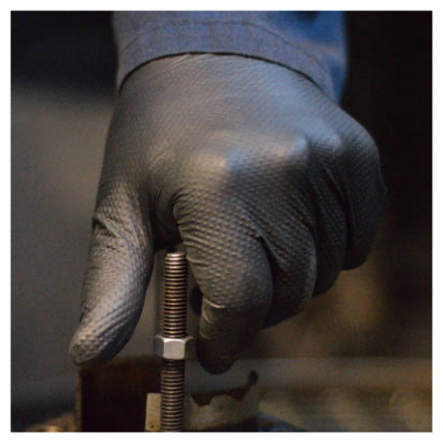 Gloveworks, 100 count, medium, black, heavy duty nitrile glove, aggressive diamond texture which provides stronger, more enhanced grip with excellent dexterity & comfort, 6 mil thick, channels away greases & oils for optimum grip, hides dirt, grease & grime to help mechanics maintain a clean, professional look, tough protection, excellent chemical resistance against common chemicals, like carburetor cleaner, & many other specialty chemicals, such as iodine & butane, latex free so those with latex allergies can work safely, powder free.