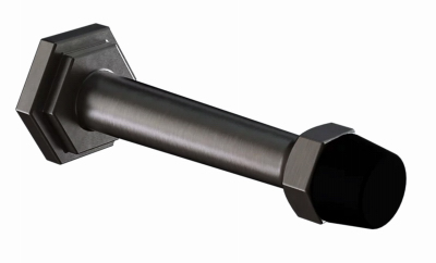 Satin nickel Powell Door Stop. National Hardware's door stops are designed to prevent a door from damaging a wall or wall moulding. Available in matte black, satin nickel or brushed gold. Instructions and mounting hardware included for installation. Surface-mounted application for easy DIY installation. Prevent a door from opening too widely, add functionality to your space. Finish matched to National Hardware's door hardware line for a clean, modern look. National Hardware's Lifespan Limited Lifetime Warranty.