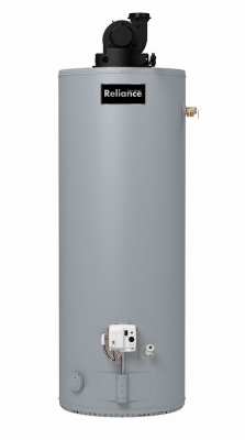 Reliance 40 Gallon Natural Gas Short Power Vent Water Heater. It is Energy Star Qualified and has a 40,000 BTU rating. This water heater features a 3 position rotatable capability blower, a 120V power cord, and must be electrically grounded. It has horizontal and vertical vent runs up to 180 equivalent feet with 4" diameter venting, a Schedule 40 vent piping system with PVC, ABS or CPVC pipe, vent distance up to 180' with 4" pipe, 2" insulation, self-cleaning diffuser end pex dip tube, glass lining, hot surface igniter, no standing pilot, first hour rating 73, recovery at a 90-Degree rise-GPH 44.7, UEF: 0.67, EF: 0.70, aluminum anode rod, installed T & P relief valve, electronic gas control for more precise temperature control, unit dimensions: 59" height to top of blower by 22" diameter, 6 year tank & parts limited warranty, 1 year labor allowance not for mobile/manufactured housing, void if installed in mobile/manufactured home, 174 lb, up to 10,100' elevation.