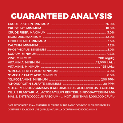 - Contains 26% protein and 18% fat plus Calcium and Phosphorus help support strong bones and teeth
