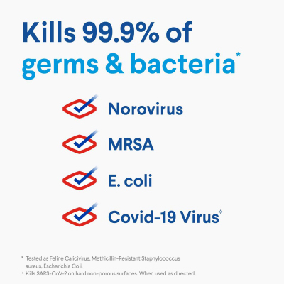 Clorox® 24 oz. Regular Bleach is a powerful disinfectant that can be used to clean and whiten a variety of surfaces. It effectively kills 99.9% of household germs and bacteria, including Covid-19, H1N1, SARS, Strep, norovirus, flu virus, MRSA, E. Coli, and Salmonella. With CloroMax Technology, this bleach protects household surfaces while cleaning, preventing stains from sticking and making cleanup easier. It also whitens whites and keeps clothes whiter longer, while removing 70% more stains than detergent alone. Easily remove tough laundry stains from white clothes, including red wine, grass, dirt, and blood stains, with this trusted bleach.