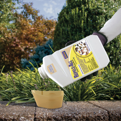 Use Repels-All Animal Repellent Concentrate from Bonide to rid your yard and garden of all types of pests. This special formula defends against squirrels, deer, rabbits, chipmunks, mice, skunks, rats, beavers, racoons, porcupines, birds, groundhogs and more. Natural active ingredients create a strong scent that will irritate pests and cause them to avoid your space without causing them any harm. When used as directed, this product is safe for use around people and pets. Apply directly to any outdoor area you wish to protect from pests, including structures and ornamental plants. Biodegradable ingredients will not cause harm to plants in your garden. This product arrives conveniently ready to mix and begin use. To use, mix with water and apply to affected areas using a trigger spray bottle or pressure tank pressure. For full use instructions, please see product label. When used as directed, Repels-All Concentrate will deter animals for up to 2 months.