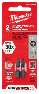 Milwaukee® Shockwave™ Impact Duty™ driver bits are engineered to be the most durable, best fitting driver bits on the market. The optimized Shockzone™ geometry is unique for each tip type to provide up to 30x longer life and absorbs 3x more torque vs. other impact bits. The Precise Fit Custom Machined Tip™ prevents stripping and reduces wobble while the Custom Alloy76™ Steel and proprietary heat treat process maximizes resistance to wear and shock. Shockwave™ driver bits are built to deliver extreme durability for the most demanding applications