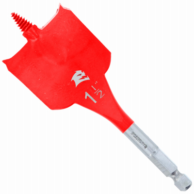 Diablo, 1-1/2" x 4" Speed Demon spade bit. Diablo's Speed Demon spade bit range provides one of the fastest, most effortless hole drilling solutions on the market for fast, clean wood. The high-performance speed-tip design self-feeds for faster hole making when compared to traditional spade bits. An optimized curved paddle design enhances the chip evacuation process for more holes per charge. This range is impact strong for increased shank stability and durability in cordless and corded impact and drill drivers.