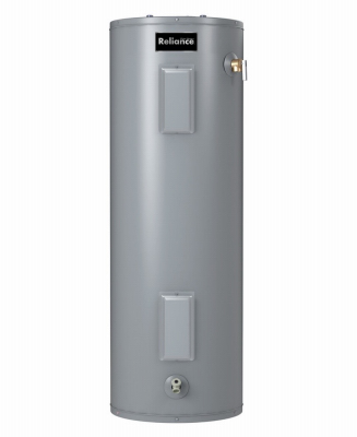 Reliance 50 Gallon Standard Electric Water Heater. It features dual 4,500 watt, 240V copper sheathed heating elements for fast and efficient water heating. The pex diffuser-end dip tube ensures even water distribution, while the glass-lined tank with aluminum anode rod protects against corrosion and extends tank life. Environmentally friendly non-CFC foam insulation minimizes heat loss, and factory installed pex polymer lined heat trap nipples and temperature & pressure relief valve provide added safety. Rated storage volume: 46 gallons, first hour rating: 62 gallons, self-cleaning tank. Water connection is located at the top of the tank with a 3/4" size. UEF: 0.92, EF: 0.95. Series 130 unit dimensions 59 1/2"Hx20 1/2"D; series 120 unit dimensions: 60 1/2"Hx20 1/2"D. Backed by a 6-year limited tank & parts warranty.