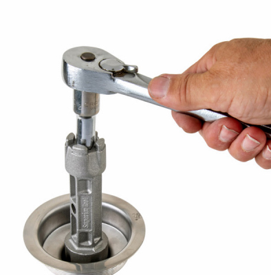 - Wrench can be turned multiple ways, including with 3/8" or 1/2" ratchet wrench and extension, with an adjustable wrench or with a heavy-duty screwdriver.