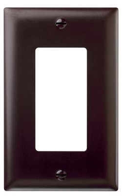 1 gang, 1 decorator opening, brown, nylon wall plate, practically indestructible, self extinguishing nylon.