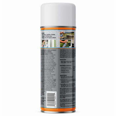 Gorilla Waterproof Patch & Seal Spray is a flexible, rubberized coating that seals out water, air and moisture. The applicator nozzle has a controlled spray pattern providing a clean, even coat. Once applied, the self leveling formula smoothly covers small gaps and cracks ensuring a watertight seal. When dried, Gorilla Waterproof Patch & Seal Spray is paintable and temperature/UV resistant resulting in lasting repairs!