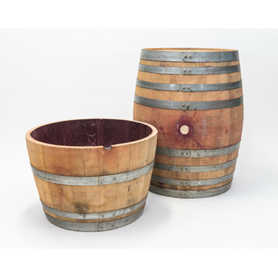 Real Wood Products 59-Gallons Brown Wood Rain Barrel. This genuine used whole oak wine barrel is ideal for multiple storage or decorative applications around the home and garden. It can be used as a rain barrel, storage container, indoor/outdoor decor, DIY projects, wedding and party rental, and in-store displays. This recycled product is made in the USA and has a capacity of 59 gallons.