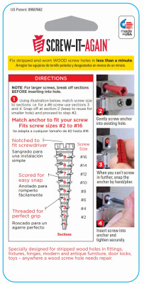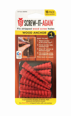 10 pack, screw it again specialty wood anchor, has been engineered to fix stripped or worn screw holes in wood, mdf & particle board in minutes, simply select the right section, screw the anchor in the hole, snap to length & screw it again.